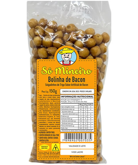 Farinha de trigo enriquecida com ferro e ácido fólico, óleo vegetal de soja (Agrobacterium tumefaciens e Bacillus thuringiensis), água, gordura vegetal de palma, cebola, amido de milho (Bacillus thuringiensis, Streptomyces viridochromoge nes, Agrobacterium tumefaciens, Zea mays, Sphingobium herbicidorovans, S. maltophilia, Diabrotica firgifera, E. Coli, Dicossoma sp.), sal, fermento biológico (Saccharomyces cerevisiae ), aroma de bacon (maltodextrina, dextrina corante idêntico ao natural caramelo IV) e realçador de sabor glutamato monossódico.