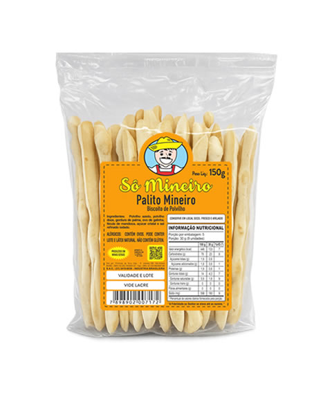 Polvilho azedo, polvilho doce, gordura de palma, ovo de galinha, fécula de mandioca, açúcar cristal e sal refinado iodado.