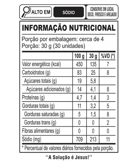 Leite integral, polvilho azedo, açúcar, ovos, gordura de palma, queijo e sal.